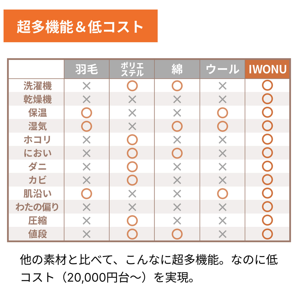 保温性・湿気対策・洗濯機・乾燥機・ホコリ対策・圧縮性・収納性・ダニ対策・ニオイ・オールシーズン・中綿の偏り・価格・・・。