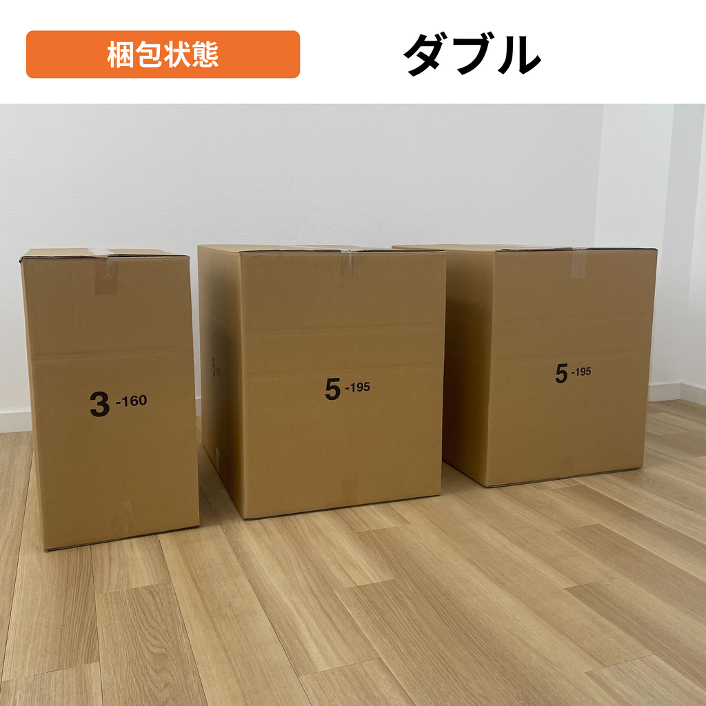 シングルサイズは2個口ダブルサイズは3個口でお届けします。